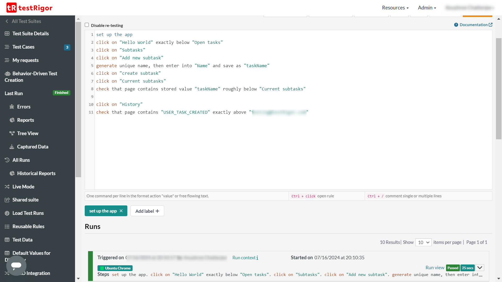 - Entering test steps in plain English language. (want to know more about the supported commands? Take a look here)