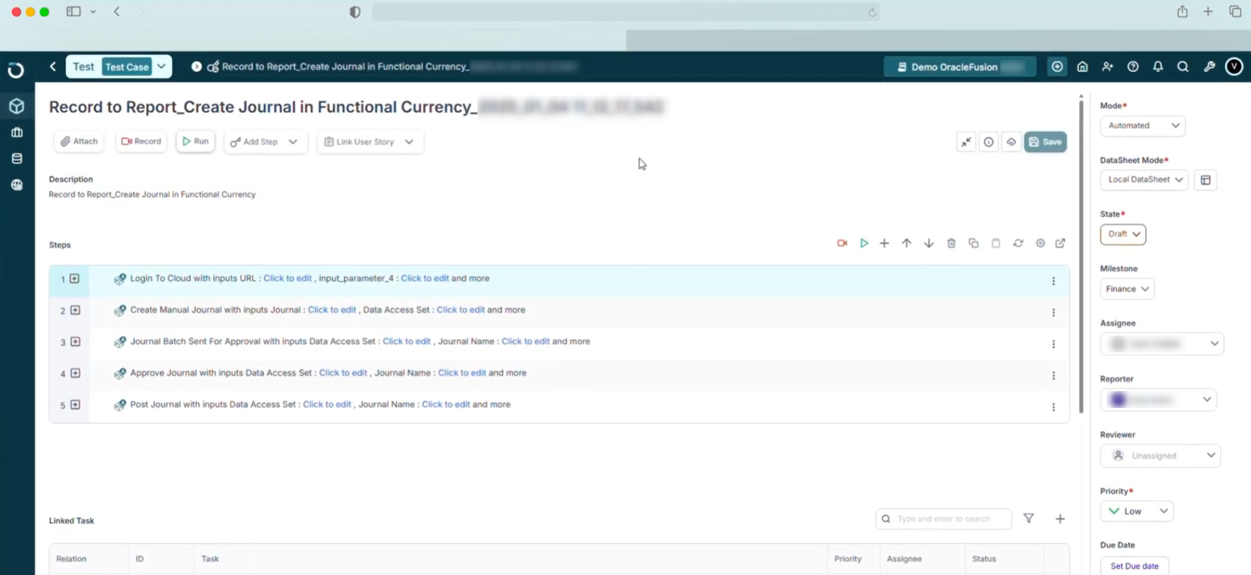 - Prebuilt test libraries for enterprise applications: The platform includes a large repository of prebuilt test cases aligned with common ERP processes. These are designed to reduce the effort required to create tests for standard business scenarios.