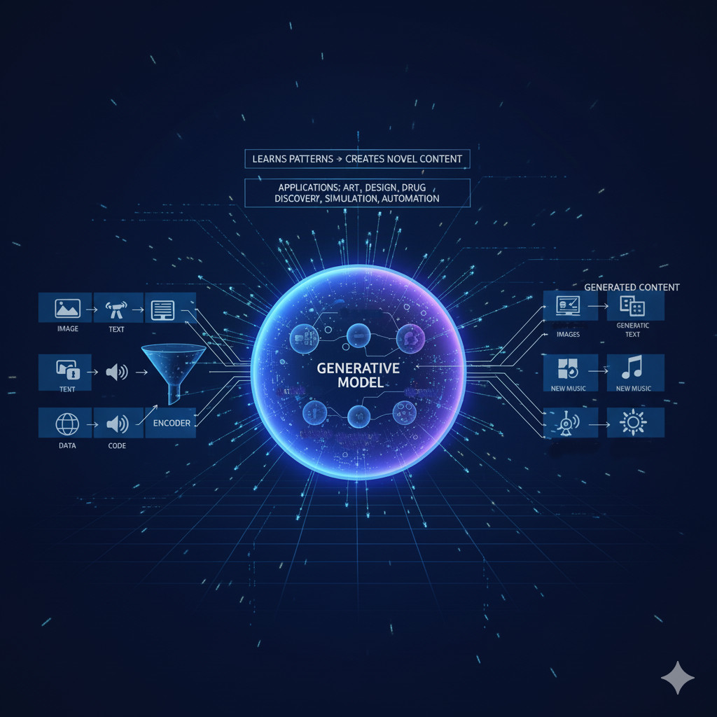 Generative models are a form of artificial intelligence that generates completely novel content. In contrast to traditional predictive models, which only predict or classify using the available data, generative models learn the overall trend and the distribution that exists in data and reproduce new text, images, audio or even code. The shift to production over prediction will underscore the way AI has ceased being a tool to aid analytics and has become a partner in the creative process and solving of problems.