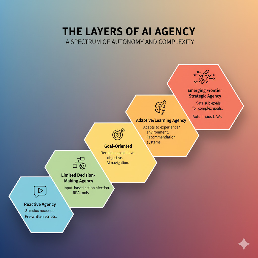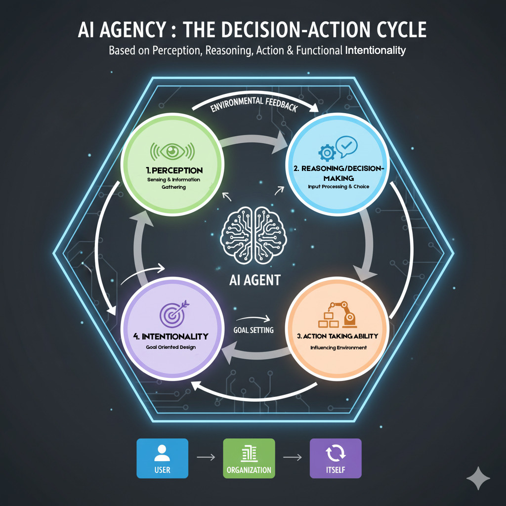 - AI Agency focuses on the capacity to perceive, decide, and act meaningfully.