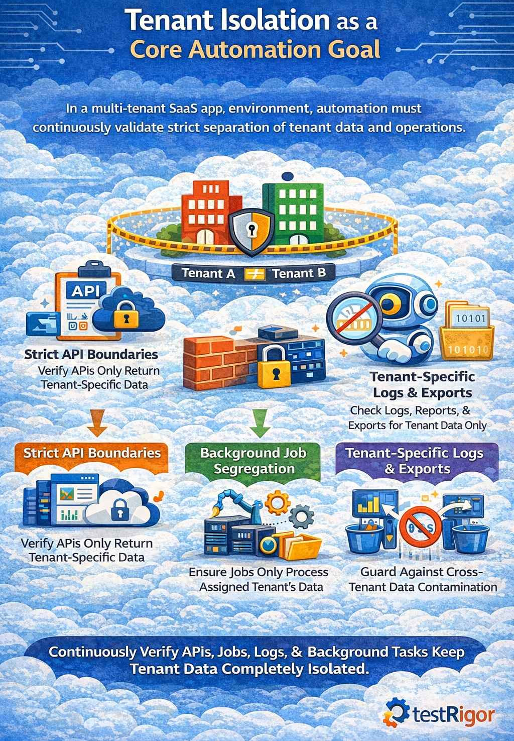Tenant isolation is not just a security concern; it is a functional requirement. It must also be validated through automation. Automation should continuously verify that: