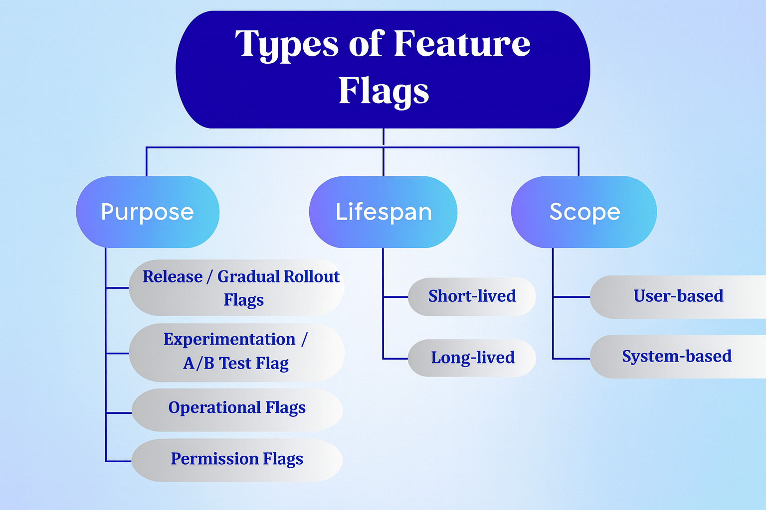 Feature flags are mainly classified based on their purpose as follows: