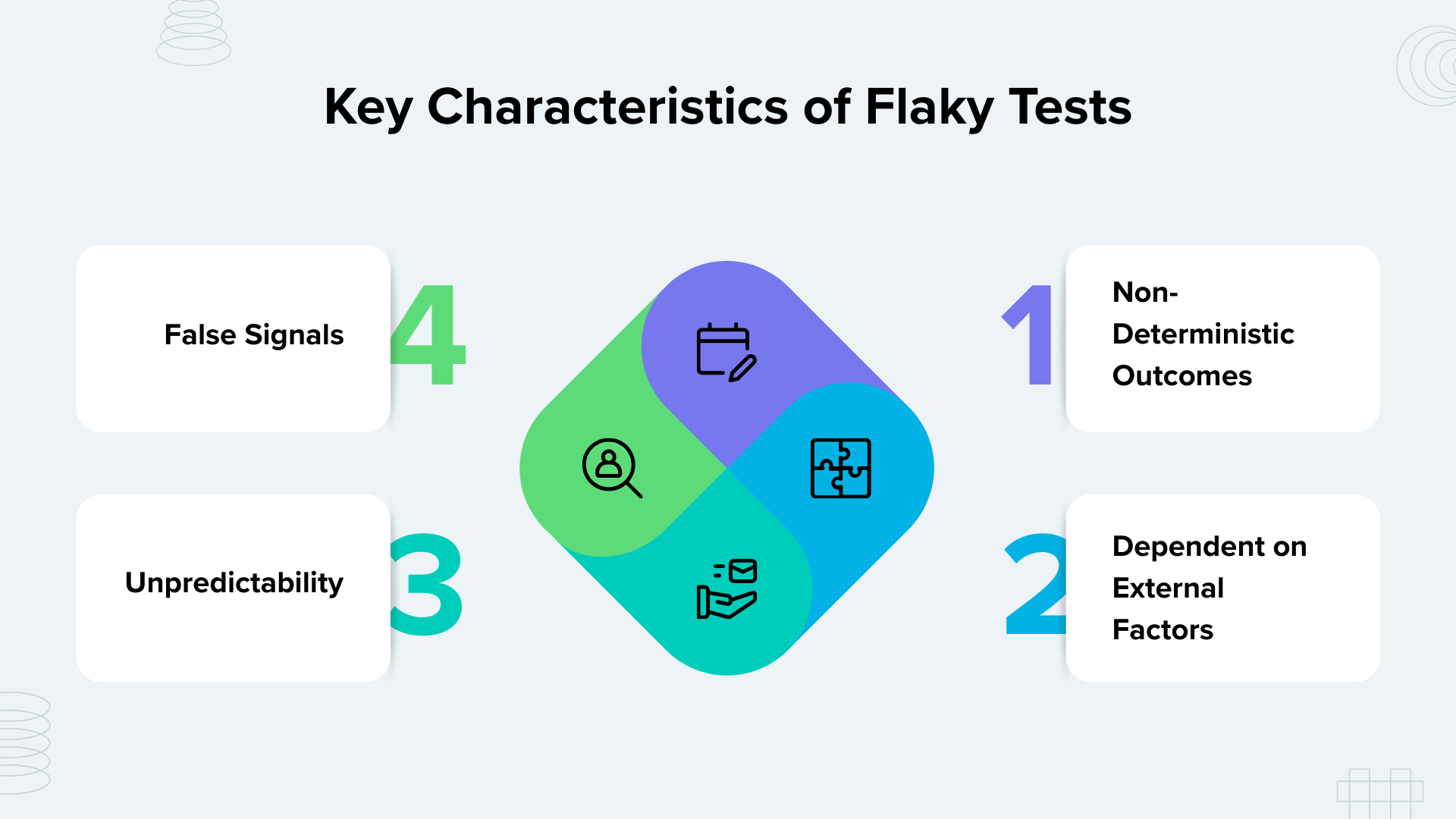 - Non-deterministic Outcomes: The same test may yield different results in several runs, even if the tested code or environment remains unchanged.