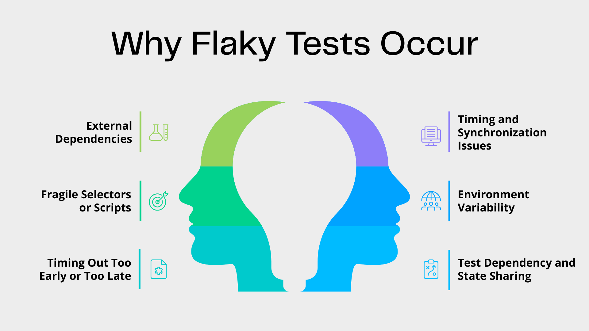 We can’t discuss flaky tests without addressing why they crop up in the first place. Although flaky tests could have a variety of triggers, most load-related reasons fall into a few general categories. By identifying these root causes, you can more easily prevent flakiness, rather than fixing the symptoms as they come up after your tests fail.