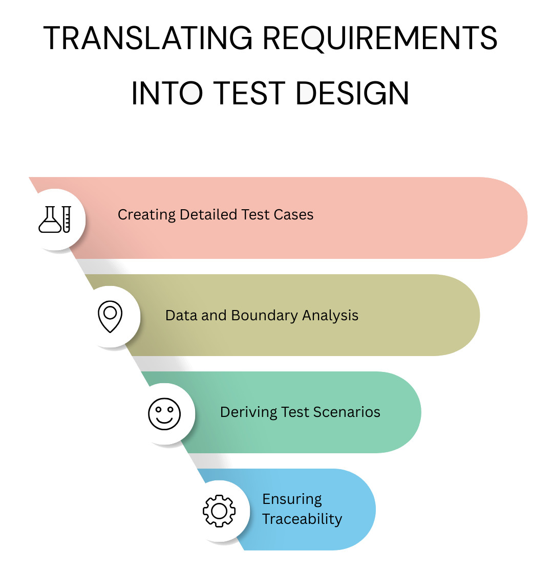 After analyzing, testers turn the clarified and validated requirements into test artifacts. This step connects the business goal with the execution of the test.