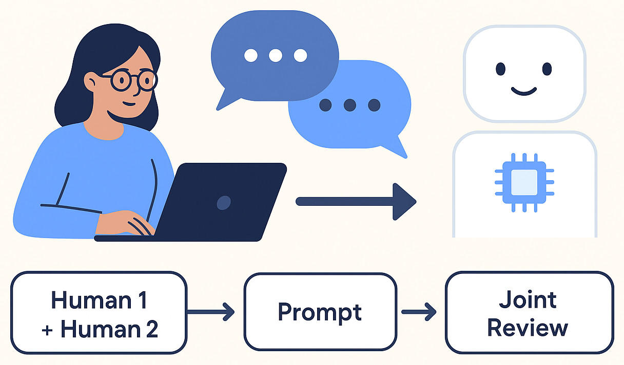 Two people working together can create questions for an AI. Talking through ideas while building them. One doesn’t go solo hunting for inputs or judging replies; they share the task at each step.