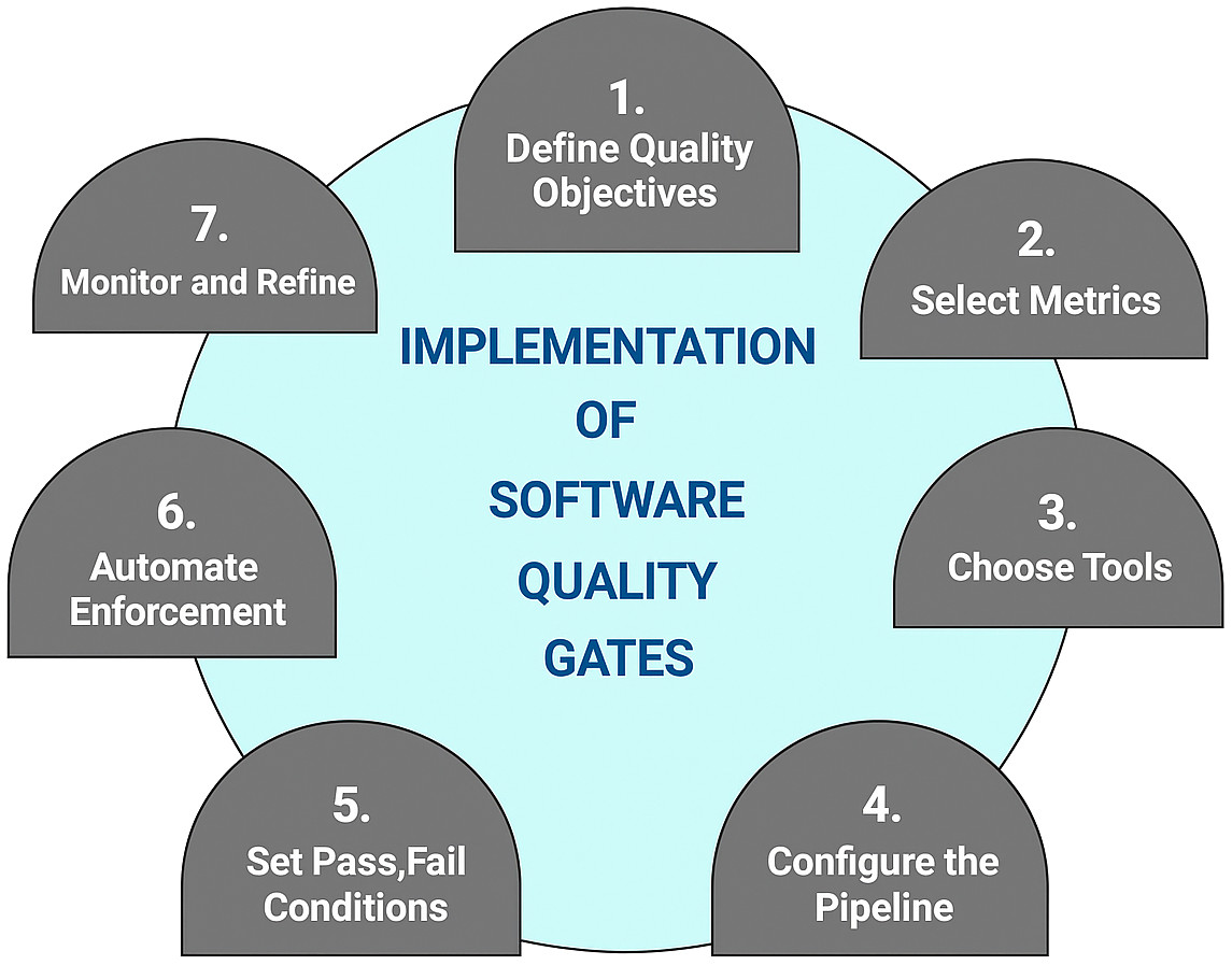 Implementing quality gates involves both technical setup and organizational alignment. Here is a stepwise sequence to implement quality gates: