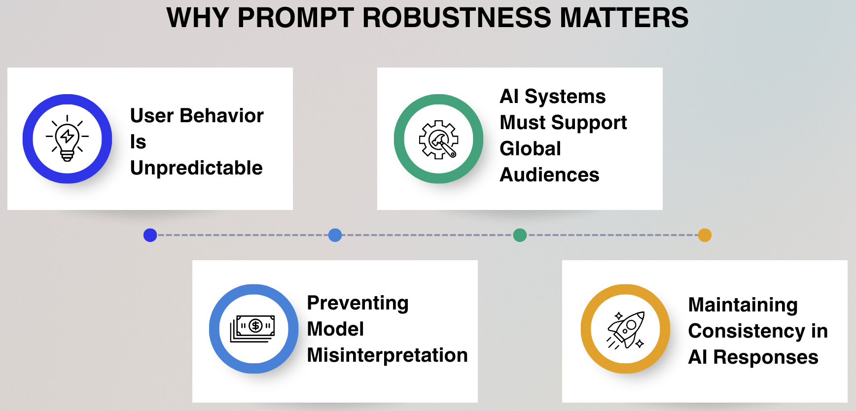 Achieving reliable AI system behavior in the presence of real users is one area where prompt robustness will be important. If an AI model can correctly interpret different ways of requesting the same thing, it enhances usability and builds trust with users while also increasing the effectiveness of the application.