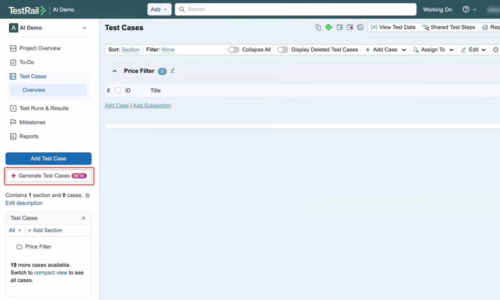 - AI-powered Test Generation: TestRail uses AI to create manual test cases for you using requirement descriptions in plain language.