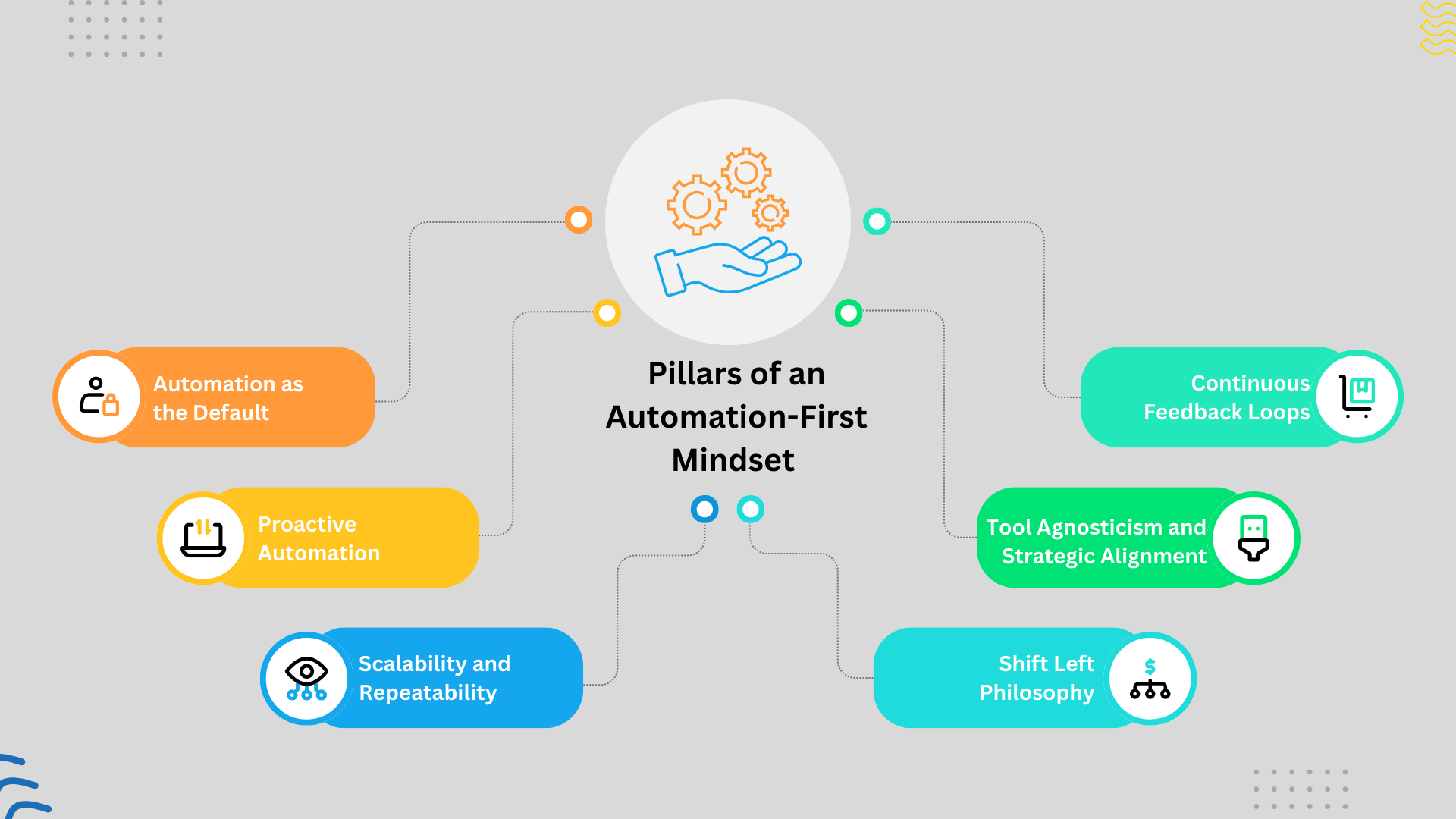 Automation-first is not merely a concept, but a framework with principles that teams and organizations can use to guide their operations. These pillars are the backbone of an effective automation-first strategy, where automation is intentional, scalable, and culturally integrated.