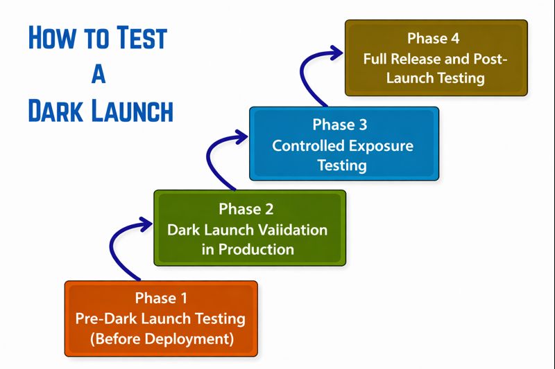 Testing a dark launch requires a structured approach that covers both functional and non-functional aspects. Testing must be controlled, careful, and well-monitored as the feature is already in production.