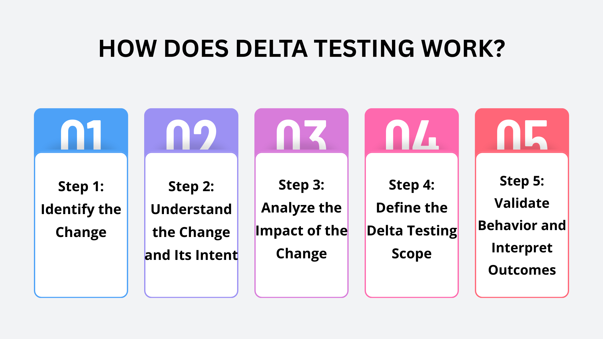 At a high level, delta testing follows five essential steps, each contributing to a structured, reasoning-driven approach to change-focused testing. Let’s see them in detail.