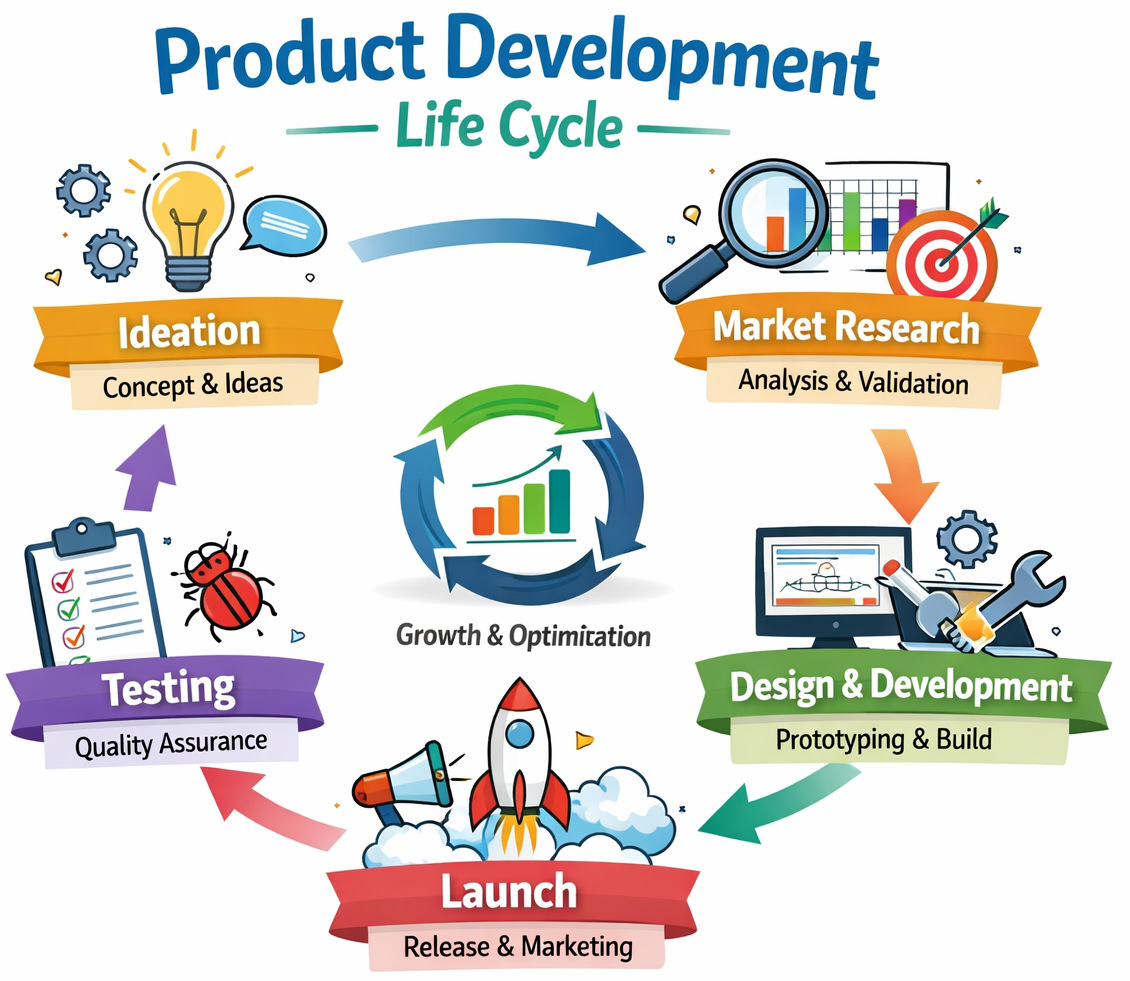 What is ideation? The ‘Ideation Phase’ marks the beginning of the Product Development Life Cycle. Here, the teams identify potential product opportunities. Organizations analyze market gaps, customer pain points, technological possibilities, and competitors. This is done while gathering insights from customer interviews, sales teams, support teams, industry trends, and data analytics. The goal is not to build a product immediately. But to generate ideas that solve real problems and show clear market demand or business potential.