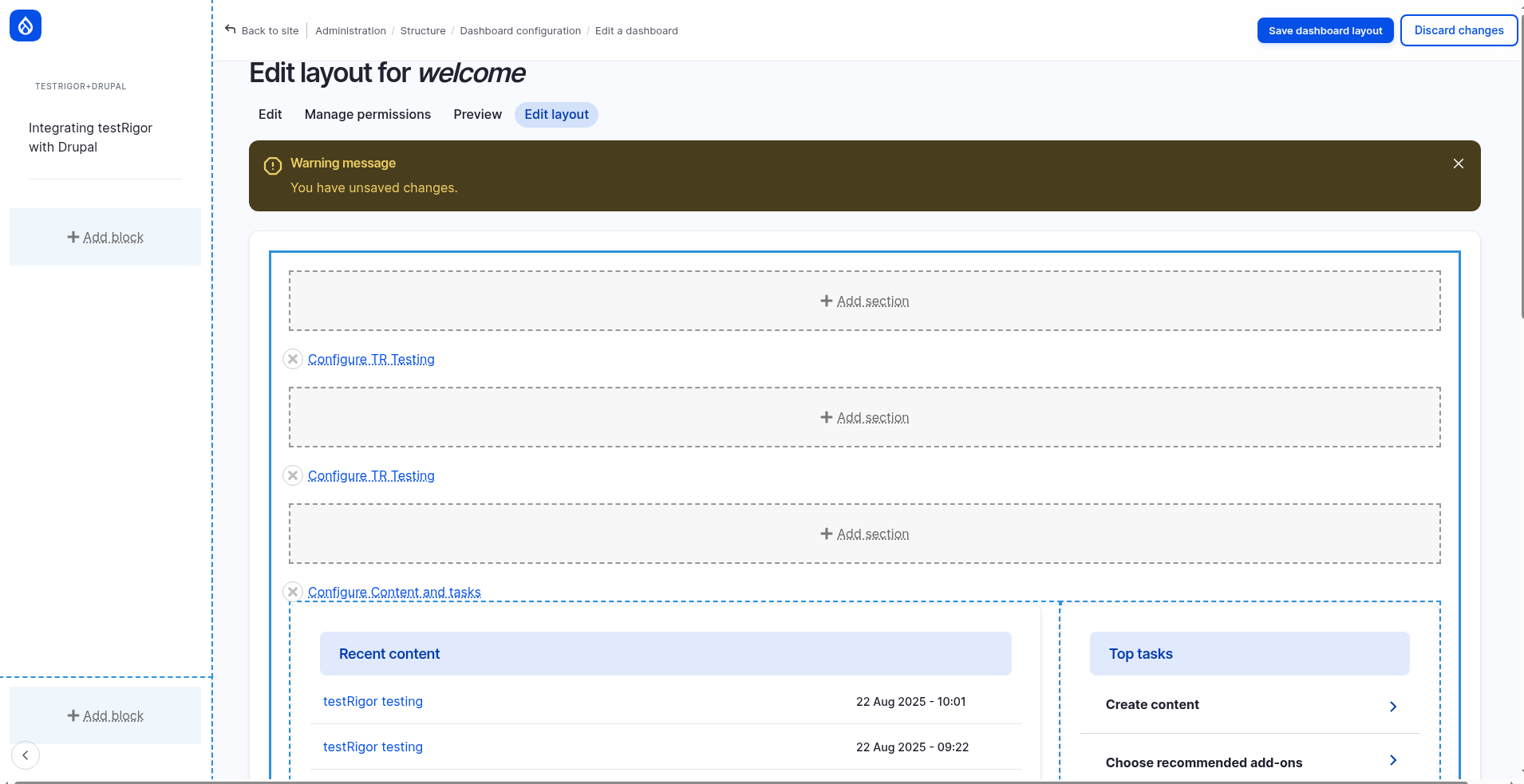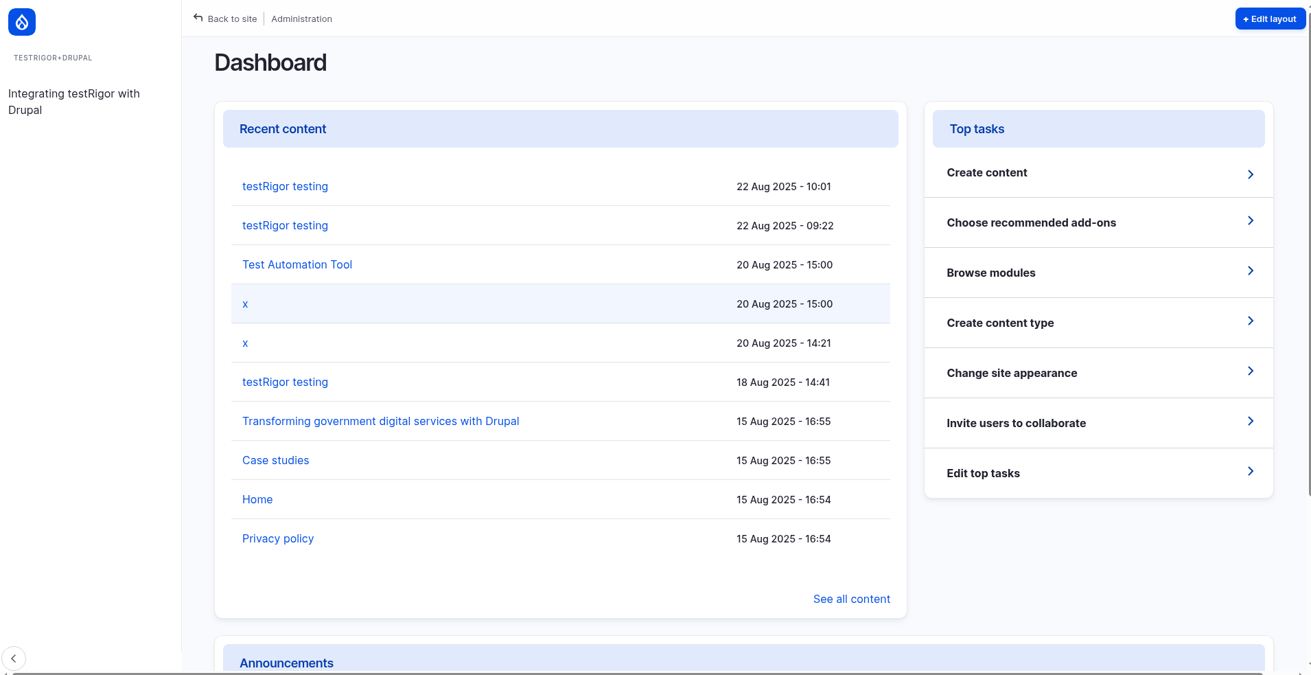Drupal is a flexible, open-source CMS for building content-rich websites and digital experiences. Thanks to powerful content modeling (content types and fields), editorial workflows, multilingual support, and thousands of modules/themes, it scales from startups to enterprises. Because those experiences evolve rapidly, an effective way to validate them is to run end-to-end tests with testRigor.