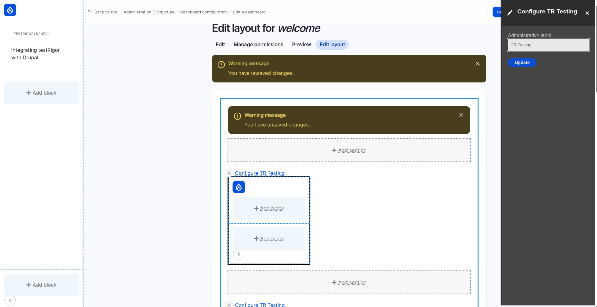 enter "Integrating testRigor with Drupal" into first input above "About text formats"