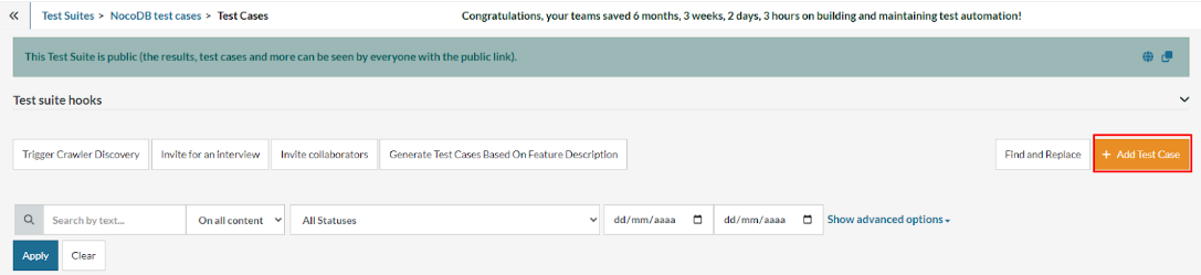 Step 4: To create a new custom test case yourself, click Add Custom Test Case.