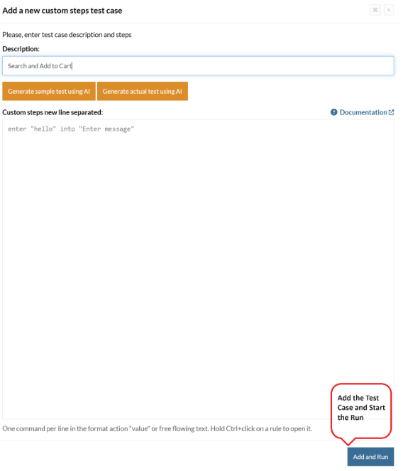 • Number of test cases to generate using AI: If you wish, you can choose to generate test cases based on the App Description text, which works on generative AI.