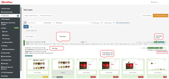 You can also download the complete execution with steps and screenshots in PDF or Word format through the View Execution option.