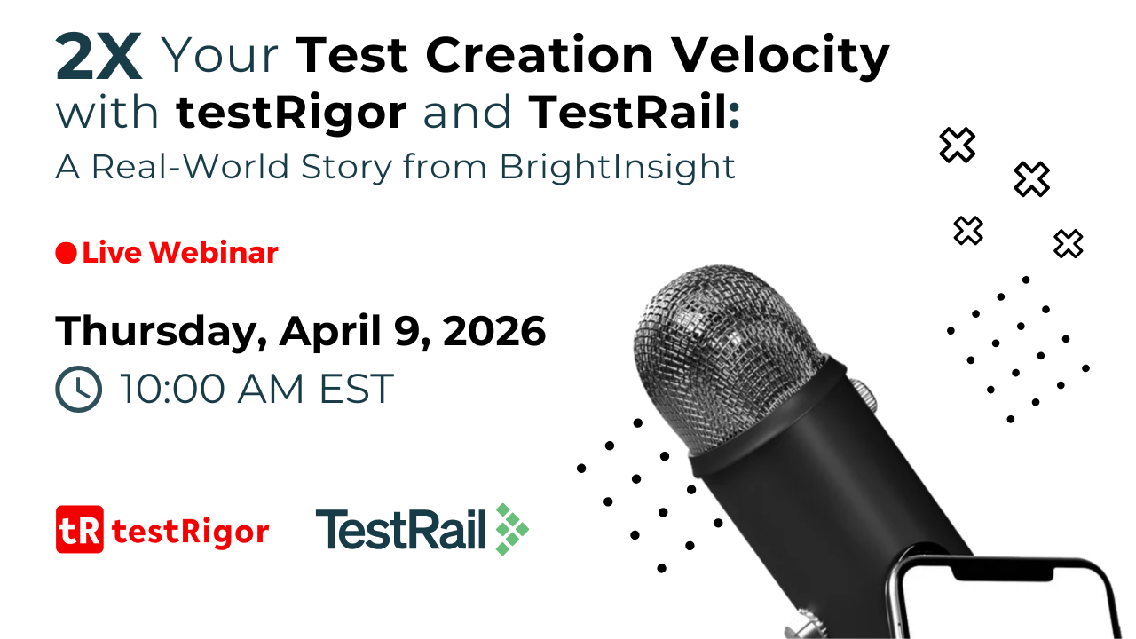 Discover how BrightInsight doubled their test creation velocity without writing a single line of code. Join us for a live, practical walkthrough of how testRigor and TestRail work together to streamline test creation, management, and execution - and learn how your team can do the same.
