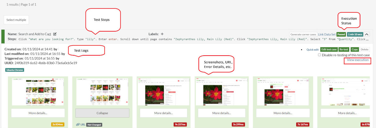 You can also download the complete execution with steps and screenshots in PDF or Word format through the View Execution option.