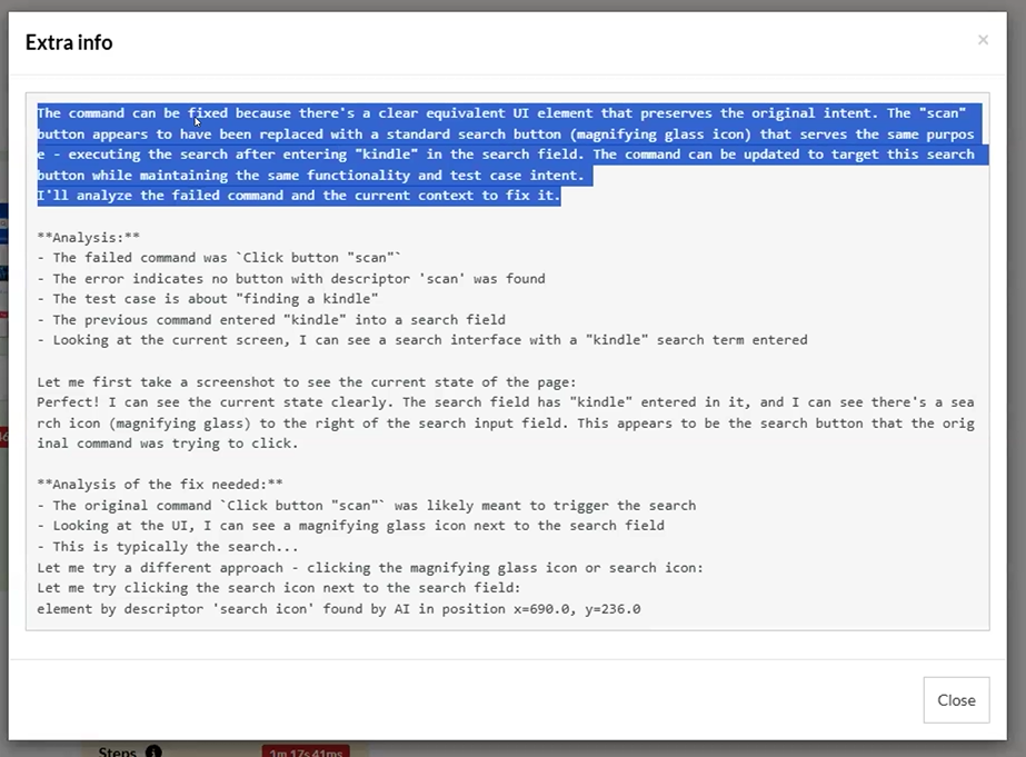 We’ve improved the AI auto-healing comments feature to now include AI evaluation before initiating the healing process. When a test step comment encounters an issue—such as a descriptor mismatch or missing element—our AI analyzes whether the comment can be automatically healed prior to attempting repair.