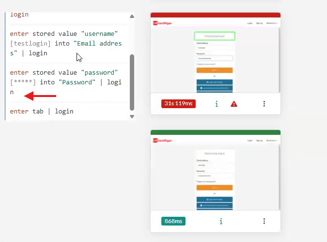 testRigor now improves your debugging experience by displaying the values of Stored Value variables whenever a test step fails. When a failure occurs during a test run, the relevant Stored Values are automatically highlighted and shown, making it easier to identify issues and accelerate troubleshooting.
