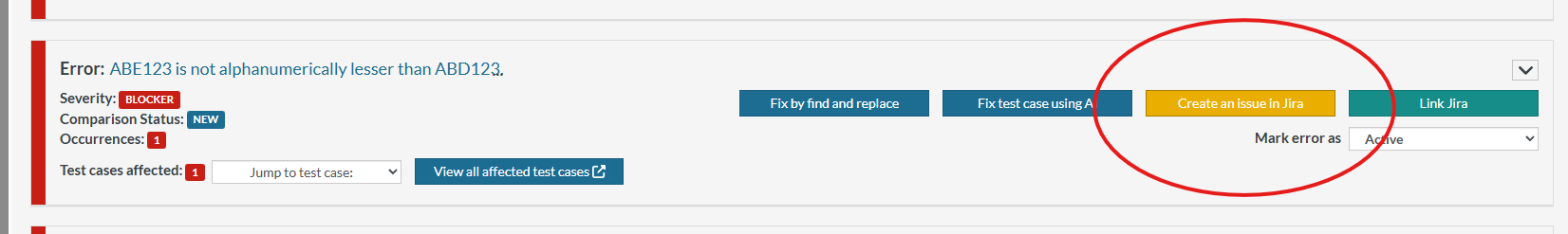 Caption: Create an Issue in Jira button on the Errors page.