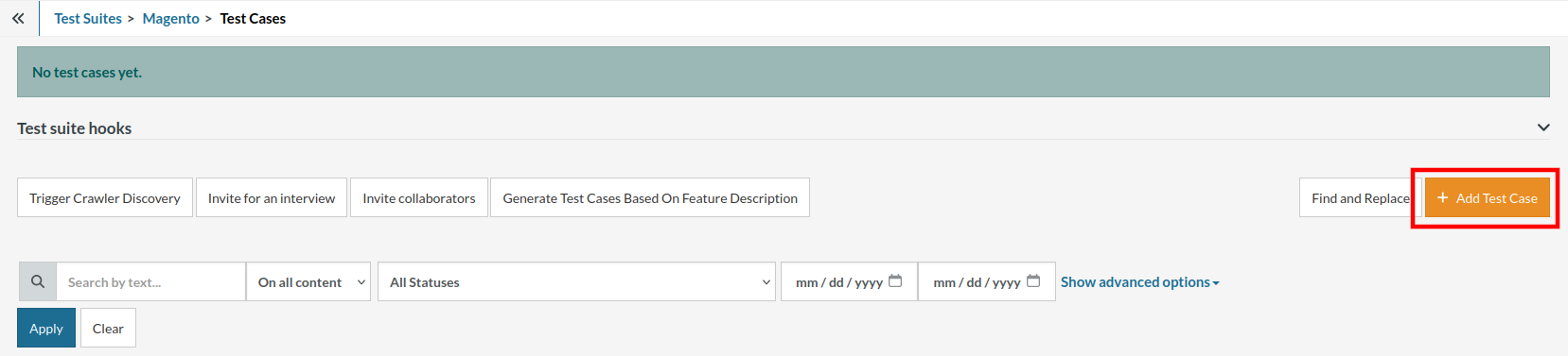 Step 3: Click Create Test Suite.